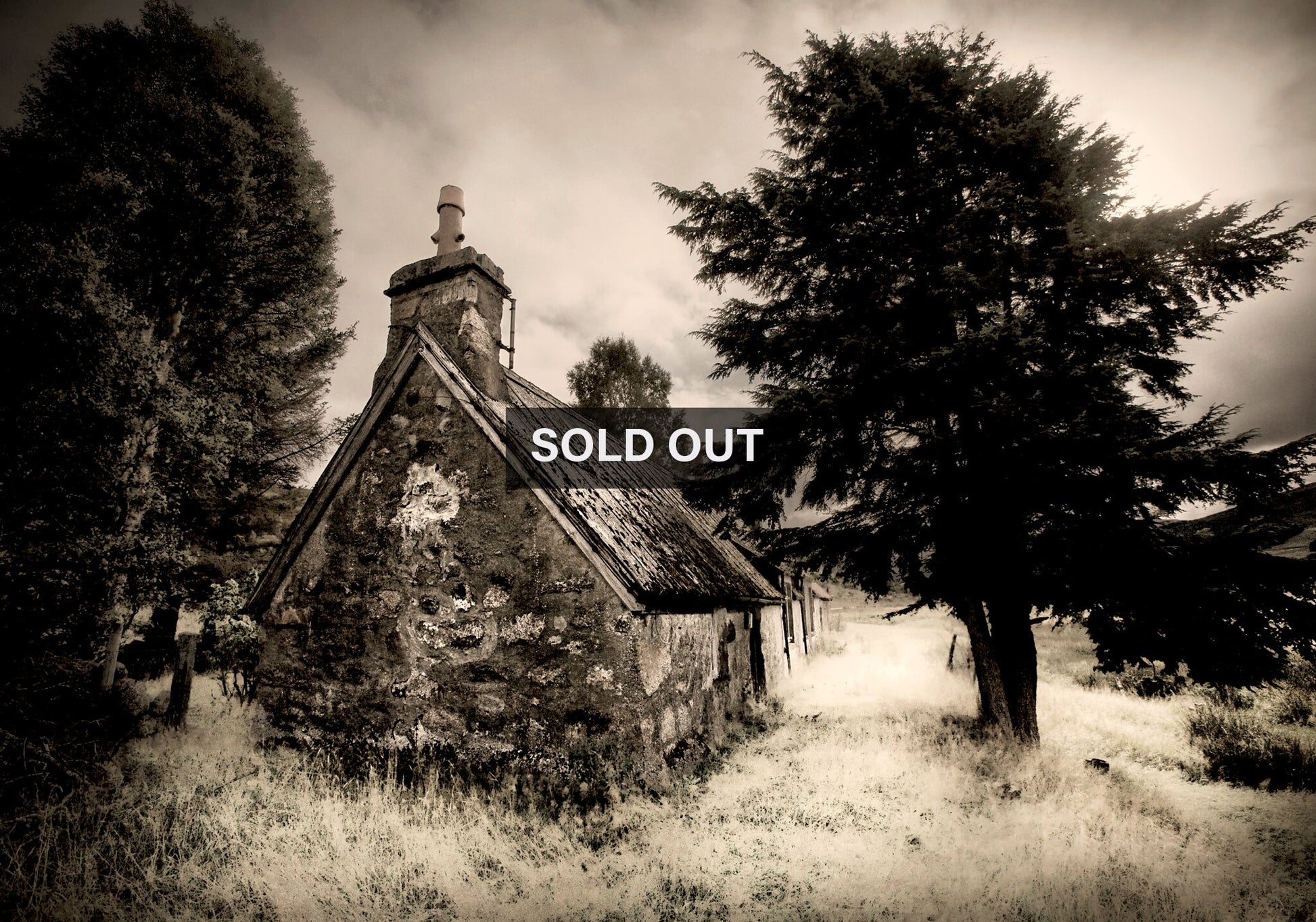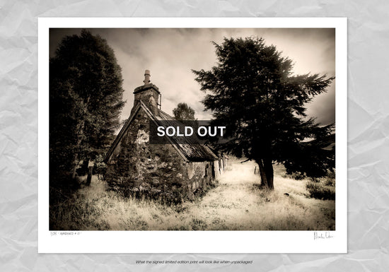 One of the few print in the collection to be photographed outside Southern Africa. This incredible sepia-toned black and white print was taken in Scotland of an old croft abandoned just outside Ullapool. This limited edition print has sold out and is no longer available for purchase.