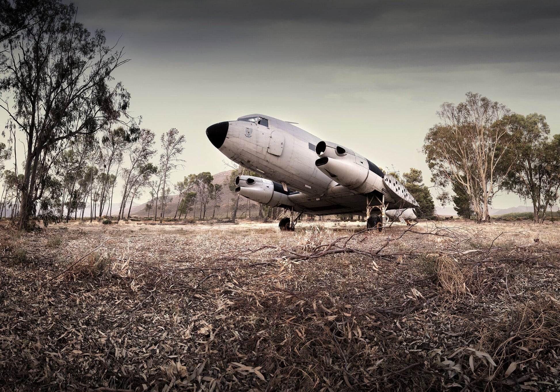 This abandoned print has proved to be very popular in the collection. Peter Corbett, a fellow photographer and friend told Martin Osner about an abandoned aeroplane he had spotted out in the countryside. Not knowing that it was military property, Osner was briskly escorted off the grounds without taking a shot. After contacting the officer commanding the unit Martin finally got permission to return to photograph it for this collection. The story as to why the aeroplane was out of commission in an area where there is no runway, standing in the middle of a forest, remains a mystery.