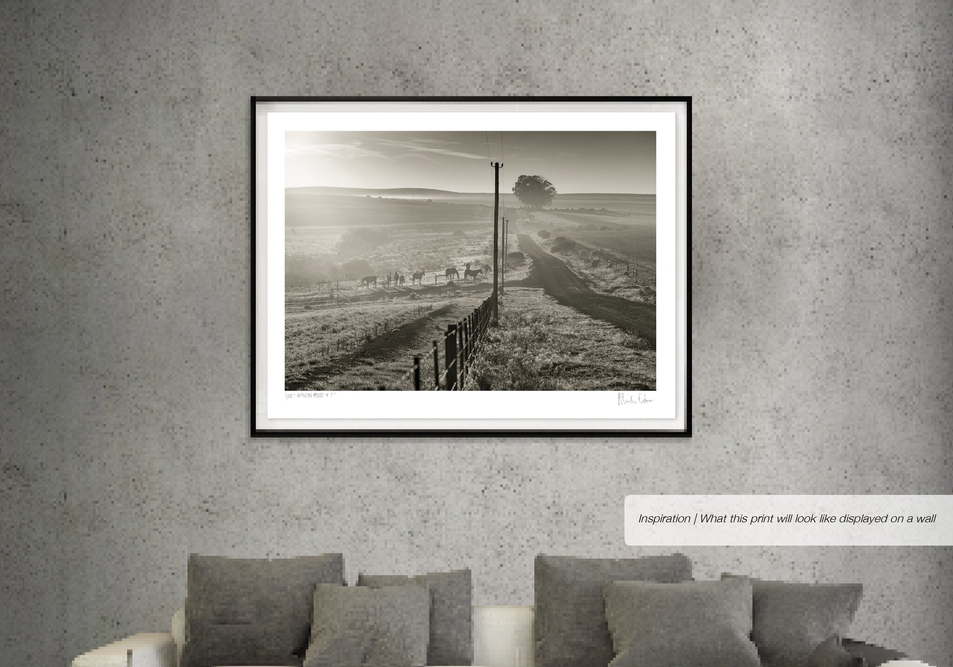 Unless otherwise stated, our prices are for unframed prints. However, we do offer a professional framing service through our in-house workshop. Simply place your print order, and then contact us to arrange framing. You can view our framing styles at osnerframing.co.za. We specialise in modern, simple frames using black, white, and natural woods (light or dark) in several modern profiles.