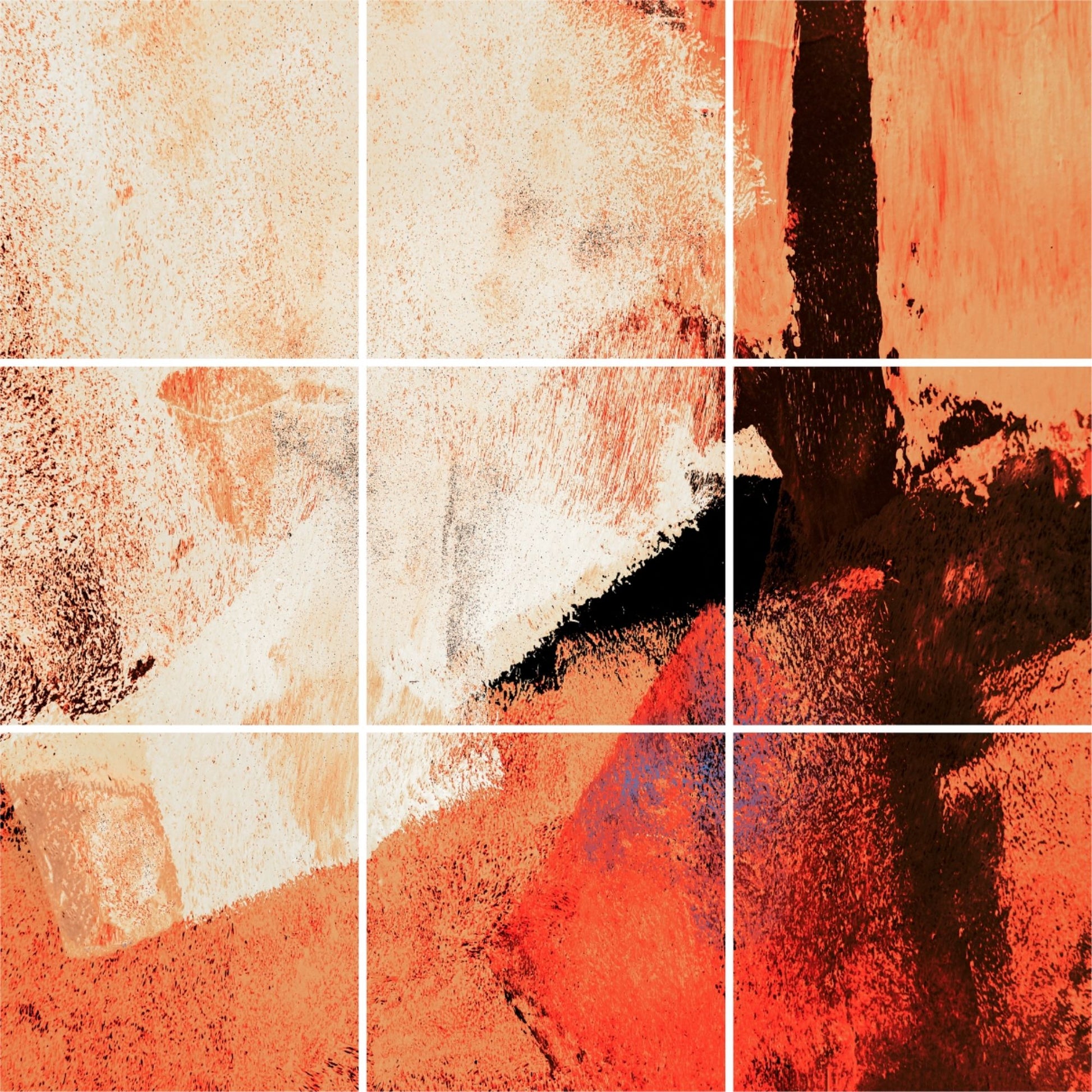 This piece was created from painted paper developed while working on a commissioned artwork, in which excess paint was applied with a roller onto spare sheets. The resulting abstract textures revealed bold and expressive colour fields, which were later photographed in segments to form the final composition. The strong use of colour was intentional, allowing the piece to stand apart while maintaining its own visual presence.