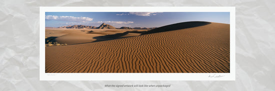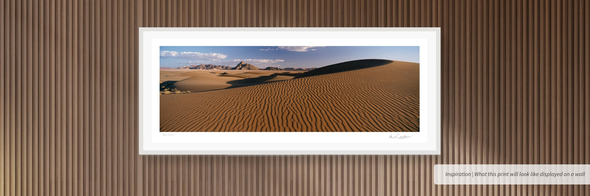 A striking fine art photograph capturing the calm before a desert storm. Wind-sculpted dunes lead to distant mountains under a brooding sky, evoking a powerful sense of stillness and anticipation. Printed in rich detail, Before the Rain brings the quiet drama of the Namib Desert into any space.