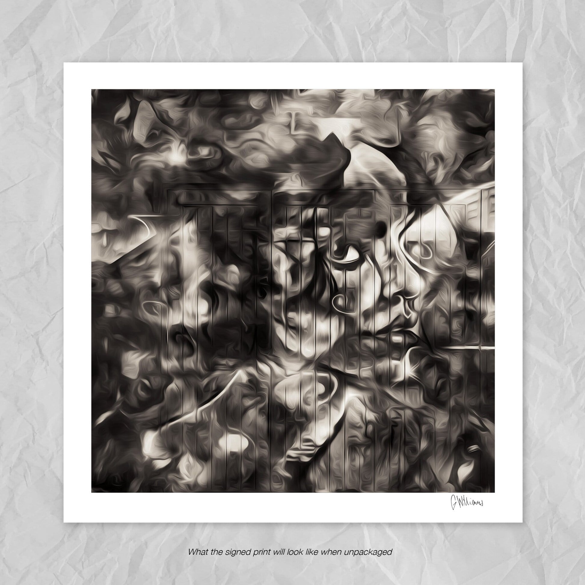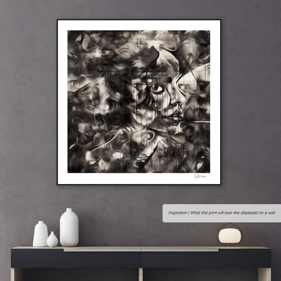 A mesmerising black and white portrait of a woman. A creative abstract impression created through the digital art medium.