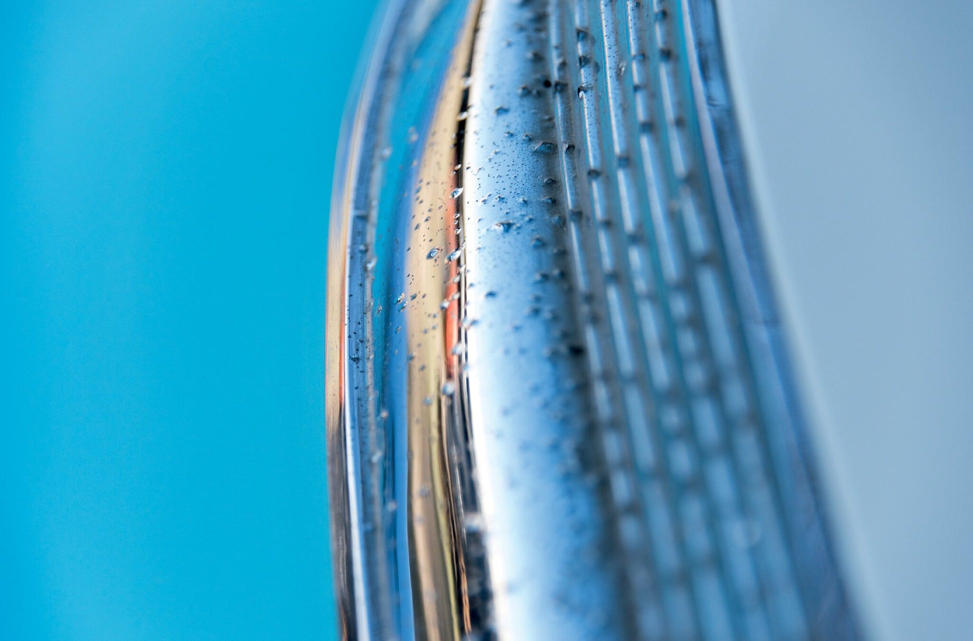 A sophisticated minimalistic abstract print with stong colour, chrome texture and beautiful curved lines.