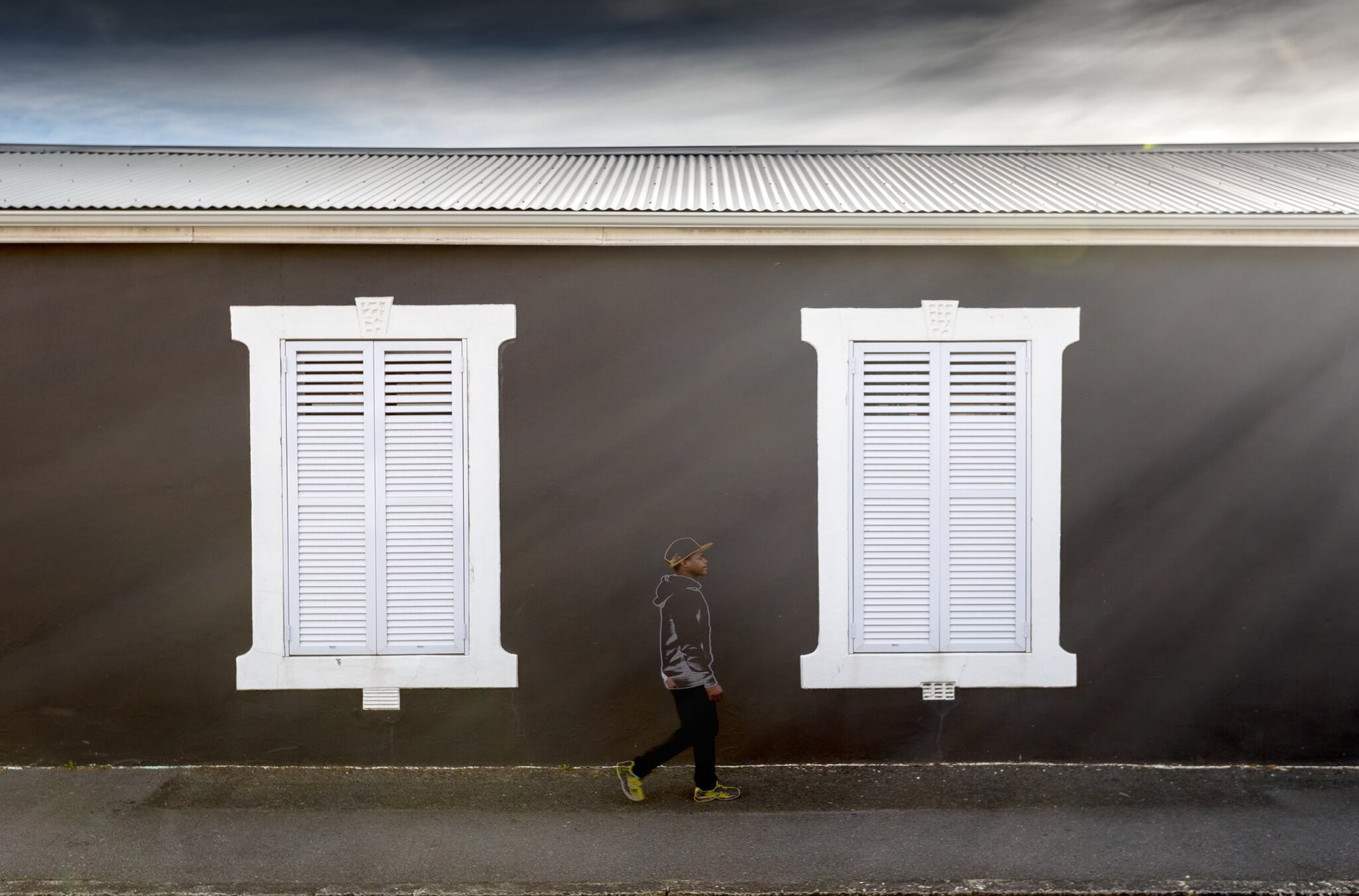 A pedestrian walking along a pavement in Salt River has been beautifully photographed using an in-camera technique that creates a cubist impression.
