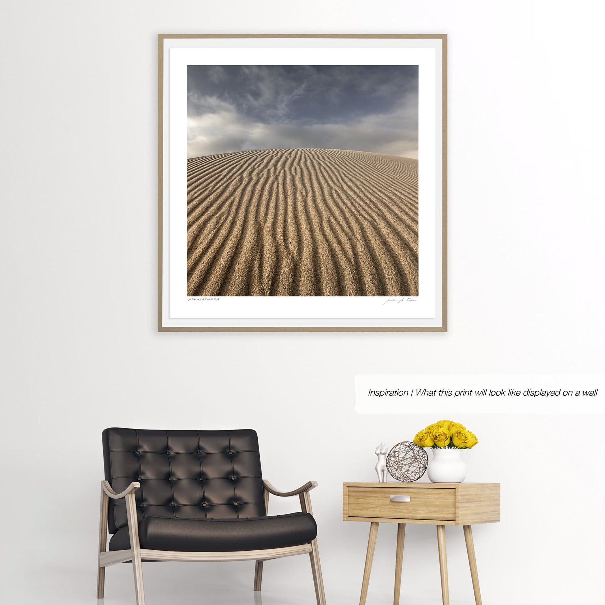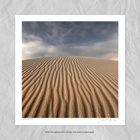 This very popular minimalistic print showcases the power of simplicity. The lines and textures of an unspoilt sand dune lead the eye towards the heavens.