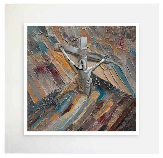 The artwork also conveys the turmoil in heaven as God turned His face away from His Son, a moment filled with anguish among the angels, who did not understand the necessity of this act for the salvation of mankind. The use of pastel colours portrays the ultimate outcome of this sacrifice, creating a serene yet poignant atmosphere that reflects the triumph of light over darkness and the promise of salvation.