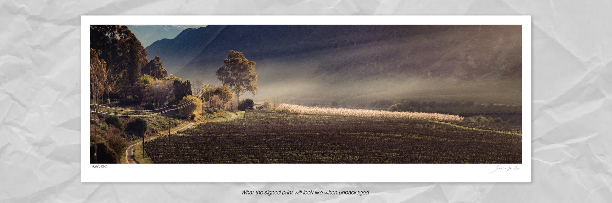 Unless otherwise stated, our prices are for unframed prints. However, we do offer a professional framing service through our in-house workshop. Simply place your print order, and then contact us to arrange framing. You can view our framing styles at osnerframing.co.za. We specialise in modern, simple frames using black, white, and natural woods (light or dark) in several modern profiles.