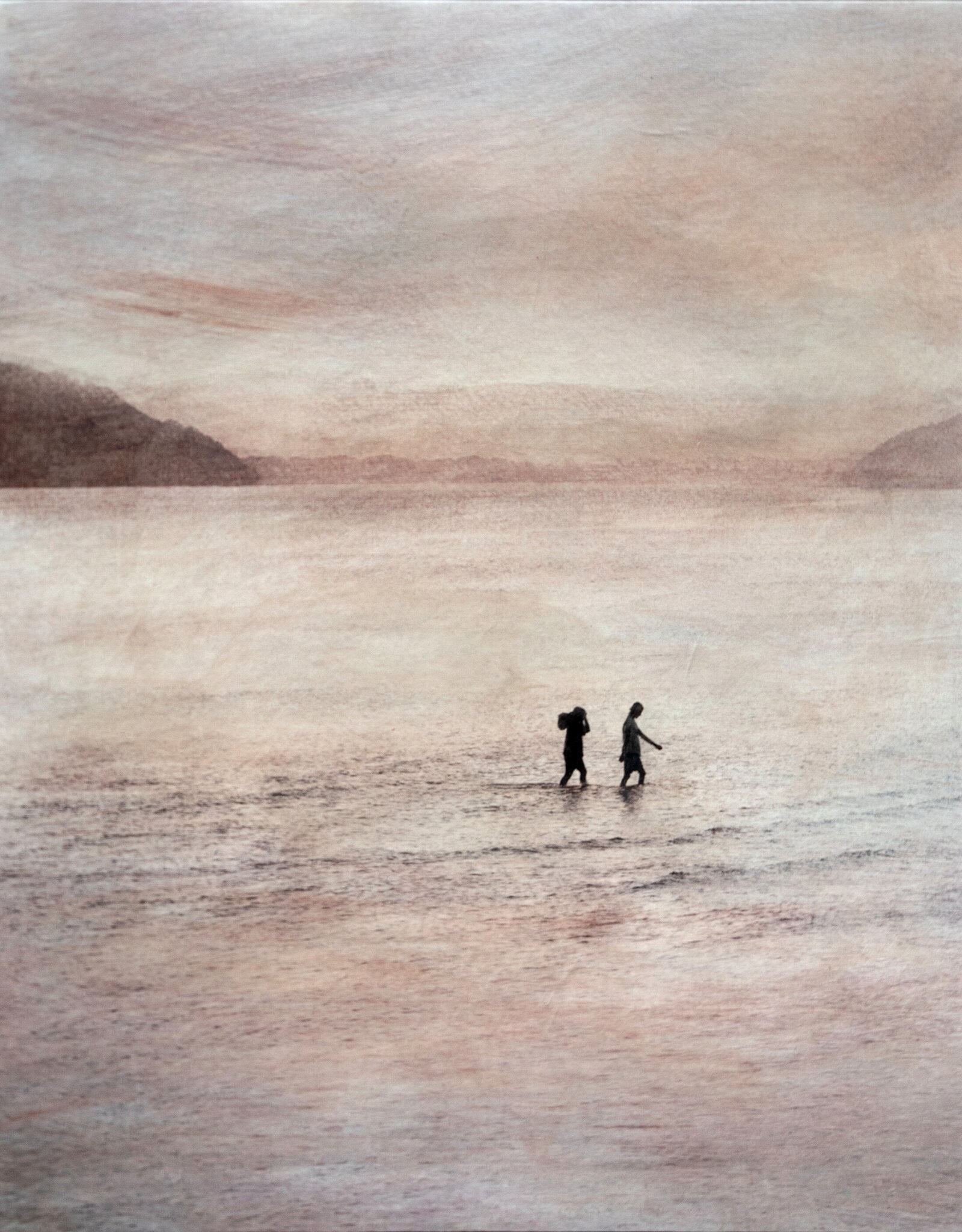 Samantha Lee Osner's collection, "Précis," combines minimalist photography with mixed media overlays to explore the relationship between humanity and nature. Several pieces portray people as tiny figures in expansive landscapes, capturing the ethereal charm of the natural world and underscoring the unimportance of personal struggles in the broader scope. The collection encourages viewers to reflect on the allure of the environment and appreciate the simplicity and serenity of nature.