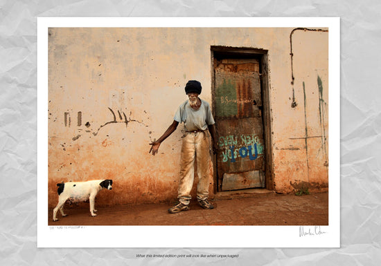 Meet Petrus and his faithful companion Meisiekind (Afrikaans for Little girl). In this iconic print by Martin Osner Petrus is photographed in conversation as he points out the love of his life. In the very next picture, Road to Freedom No.2 they both turn and walk out of the frame, completely in sync with one another.