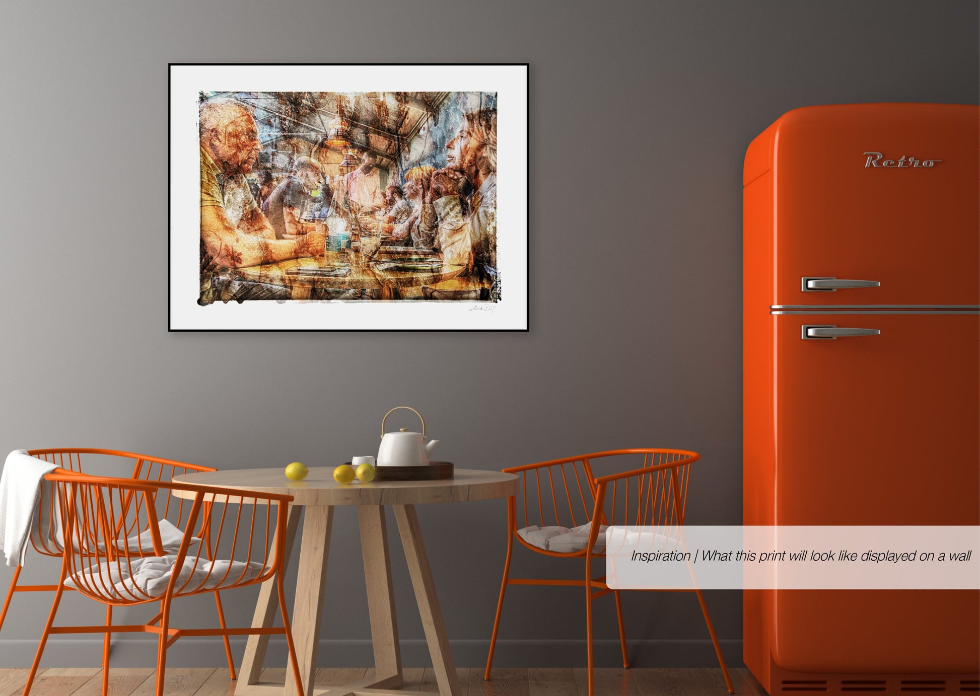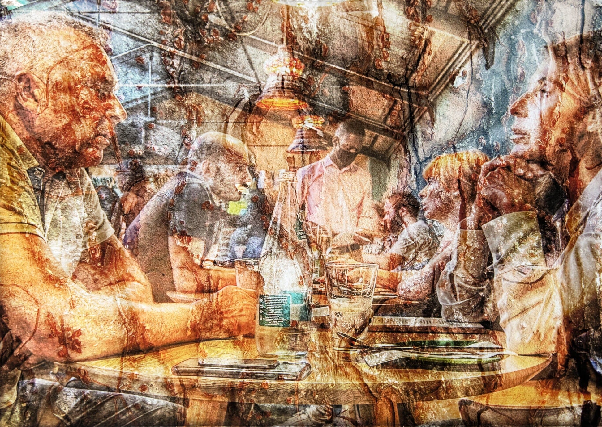 This artwork of a restaurant scene on Valentine's Day was created using multiple exposures and texture overlays.